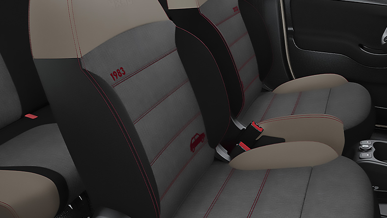 Interior marked by details in Ivory color that go from the dashboard to the soft touch inserts on the seats - made with recycled fabric and the fronts come with commemorative icons.