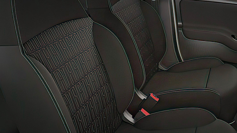 Be comfortably stylish on the black fabric seats with the Fiat Monogram.