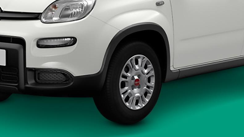 Your Panda comes with a 14'' steel wheels with silver painted covers as standard.